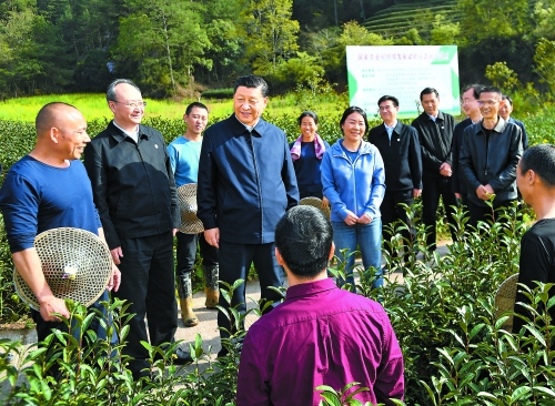 3月22日至25日,中共中央总书记、国家主席、中央军委主席习近平在福建考察。这是22日下午,习近平在南平武夷山市星村镇燕子窠生态茶园,同...