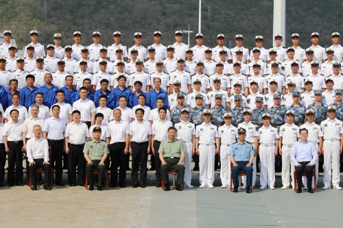 4月23日,海军三型主战舰艇——长征18号艇、大连舰、海南舰在海南三亚某军港集中交接入列。中共中央总书记、国家主席、中央军委主席习近平...