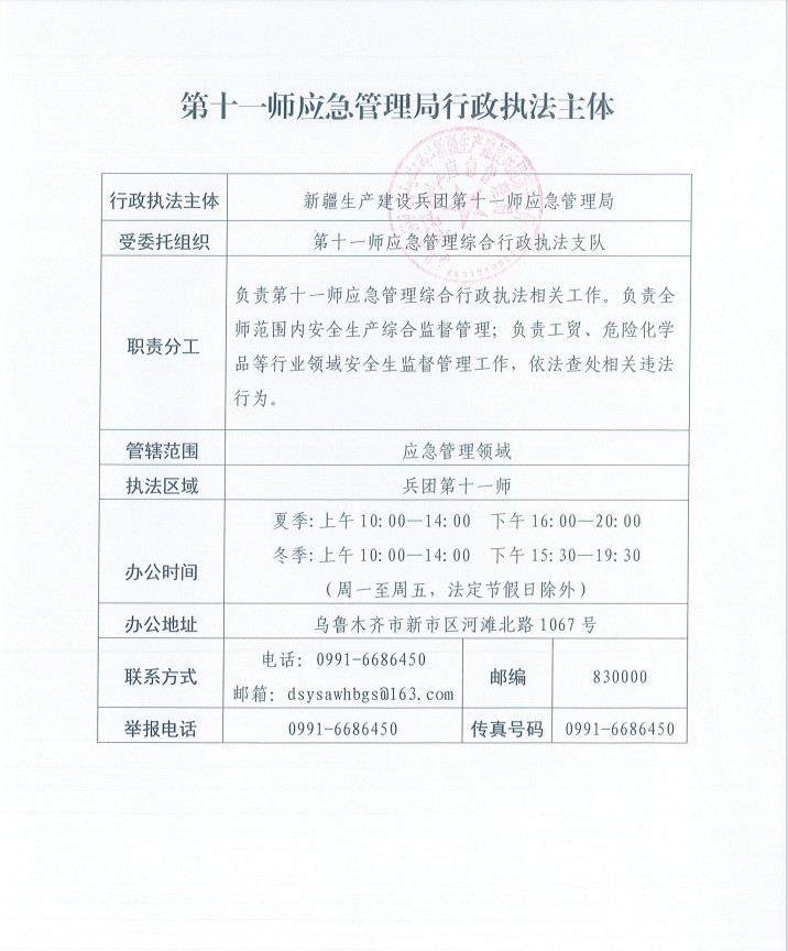 第十一师应急管理局行政执法主体-尊龙凯时