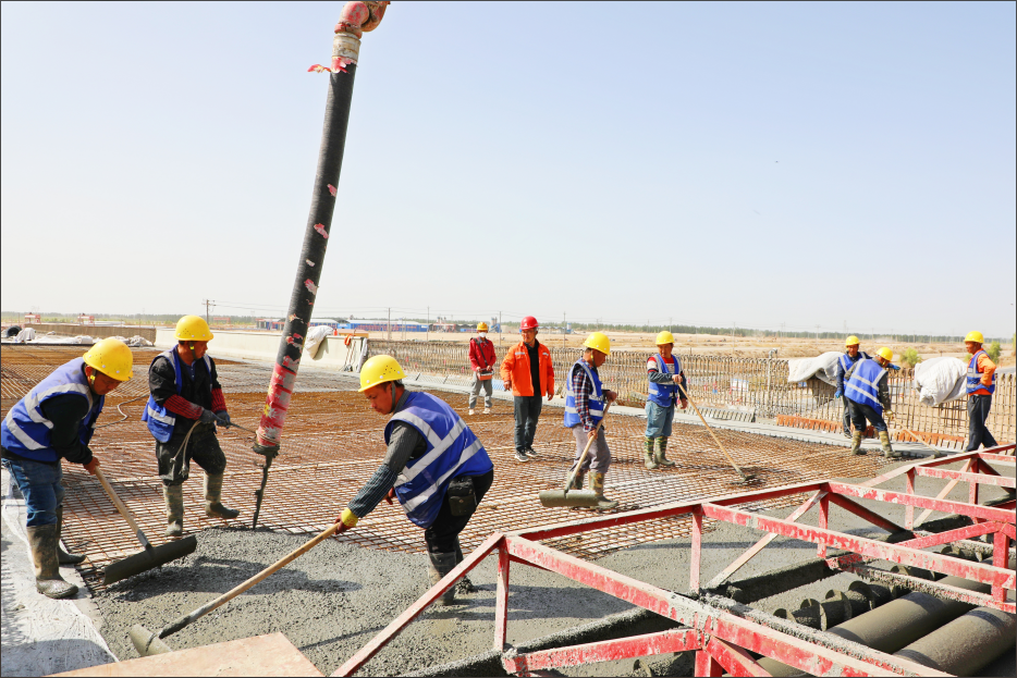 近日,该项目施工人员对大门局部路面进行硬化。 王玉崭摄 近日,由兵团建工城建集团第三工程公司承建的准东经济技术开发区国家级煤化...