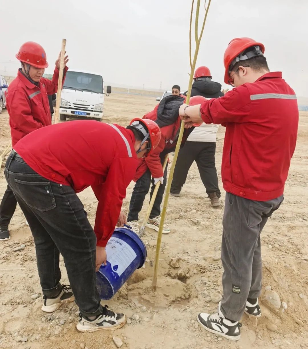 日前,兵团建工水电集团八建公司墨玉县粮食产能提升项目开展植树活动。