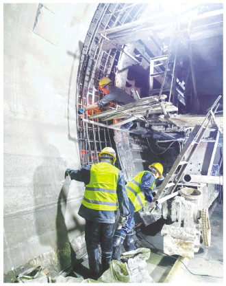 图为工人进行混凝土浇筑。 宋晓亮摄 “‘五一’期间,我所负责的施工区域重点工作是底基层摊铺作业。”项目生产副经理丁朋介绍,“项目...