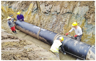 日前,兵团建工水电集团承建的威远大石包水库一标段施工人员正在安装左岸引水管道dn800球墨铸铁管。该管线总长9.6公里,现已完成2.8公里。