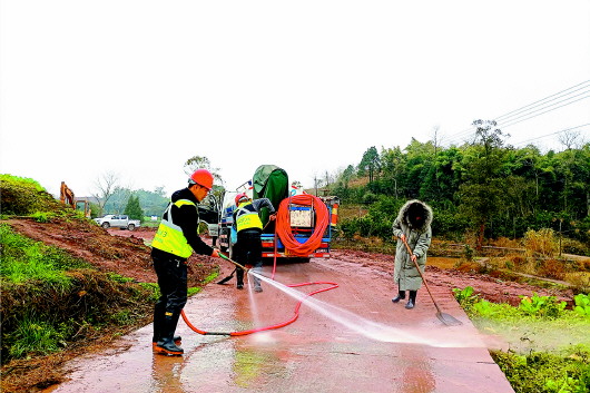近日,北新路桥集团长沙分公司重庆双钱高速公路土建施工sqtj3标段项目经理部春节值班人员帮助村民清洗路面,方便村民出行。经过清理,人行道上...