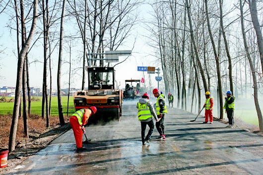 北新路桥集团长三角分公司宿州道路养护市场化工程项目部抢抓时间节点,加快施工进度,力争年底前完成35公里道路施工任务。图为该项目施工车辆...