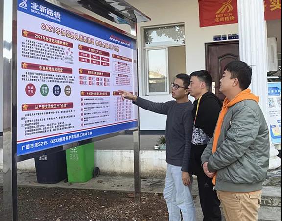 北新路桥集团长三角分公司广德项目部员工正在廉政教育专栏前驻足学习。 周佳摄
