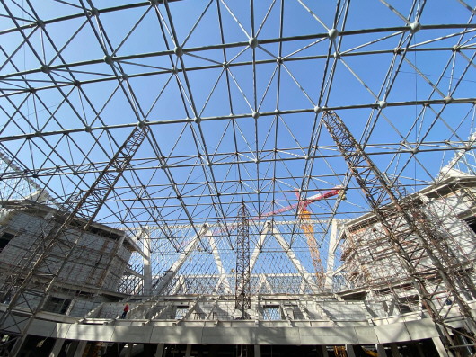 11月25日,在兵团建材集团六建承建的塔里木大学体育馆项目部,机械轰鸣,工人们正在紧张而有序地进行篮球馆顶升施工。 为努力创建优质工程,...