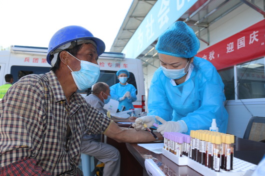 9月14日,十一师医院在兵团市政轨道交通集团华通公司龙湖康养项目部开展“奋斗百年路,启航新征程”佳节送温暖,健康永呵护,主题党...