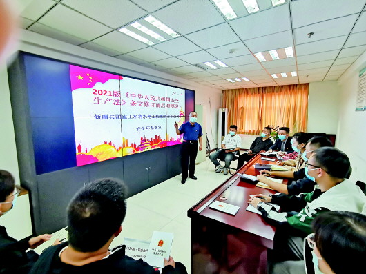 兵团水利水电集团安全环保部深入企业和项目部宣传贯彻新《安全生产法》。马溪摄