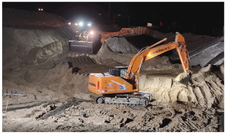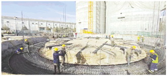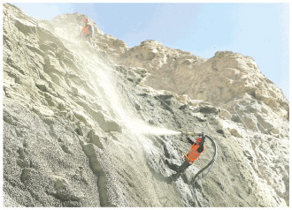 3月25日,兵团建工水电集团八建公司玉龙喀什河水利枢纽工程1号深孔放空冲沙洞出口边坡施工便道正在进行混凝土喷护。 马军强摄